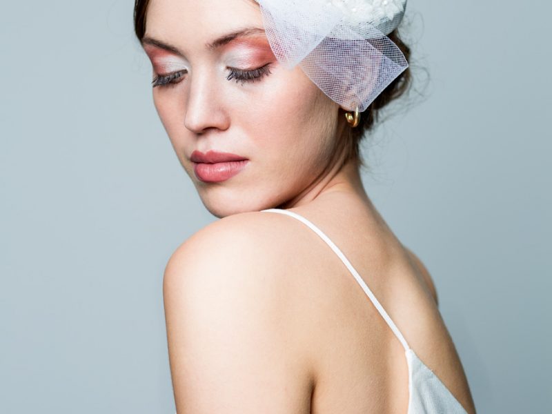 Decidí combinar el fieltro de lana de la copa (tupido y compacto), con un ala grande y semi transparente que le aportara ligereza. No queremos que el rostro de la novia se esconda, aquí el toque femenino es esa transparencia sutil.