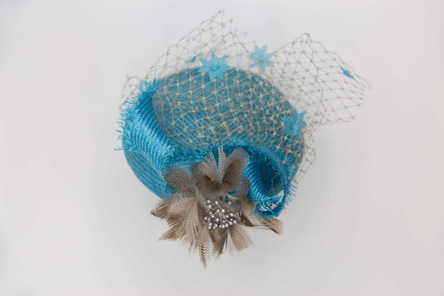 Os enseño un ejemplo. Hace años, para una boda en Zamora, me hice esta boina-sombrero. Lo conservaba en su sombrera, intacto, pero no había vuelto a usarlo. Este verano, lo transformé. En la colección de mi web, podéis ver el resultado. Ahora es el Tocado Casquete Celeste Betty, mucho más pequeño (antes tenía 18 cms y ahora tan solo 12 cms), pero cargado de fuerza y estilo.